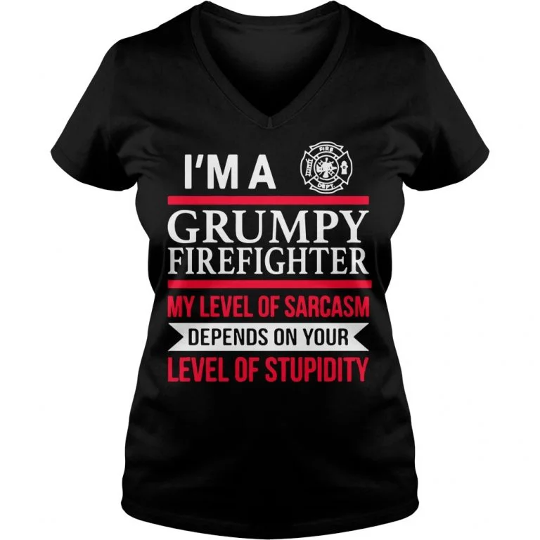 Buy it here: I’m a Grumpy firefighter my level of sarcasm shirt